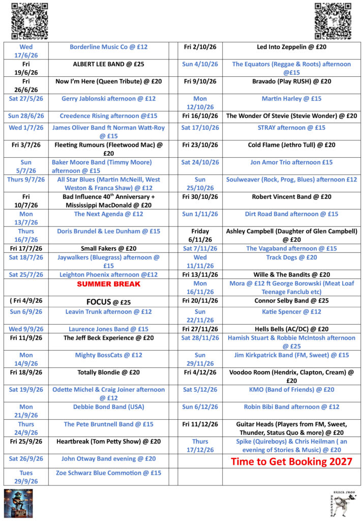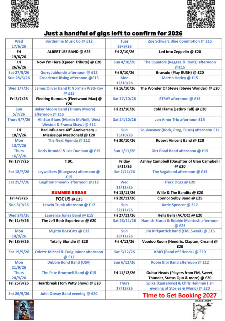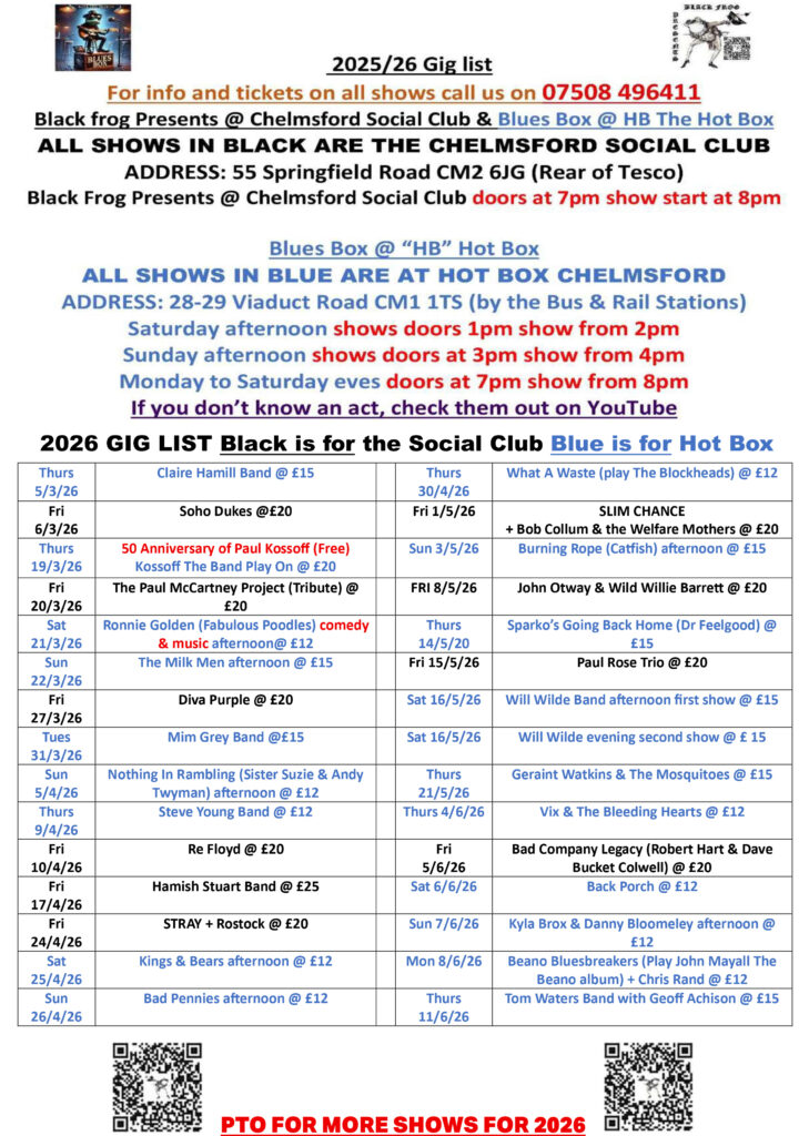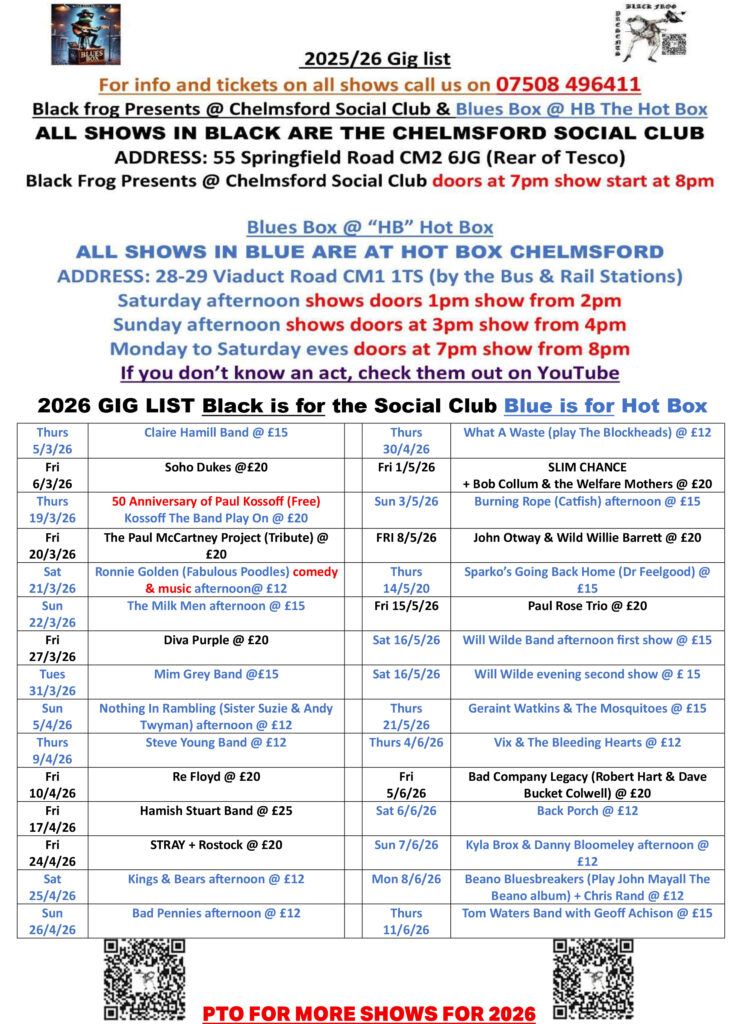 Our next show for 2026 at the Chelmsford Social Club is on Friday, 27 February.