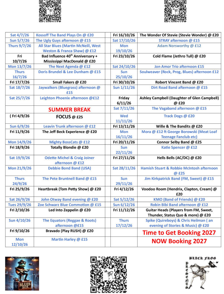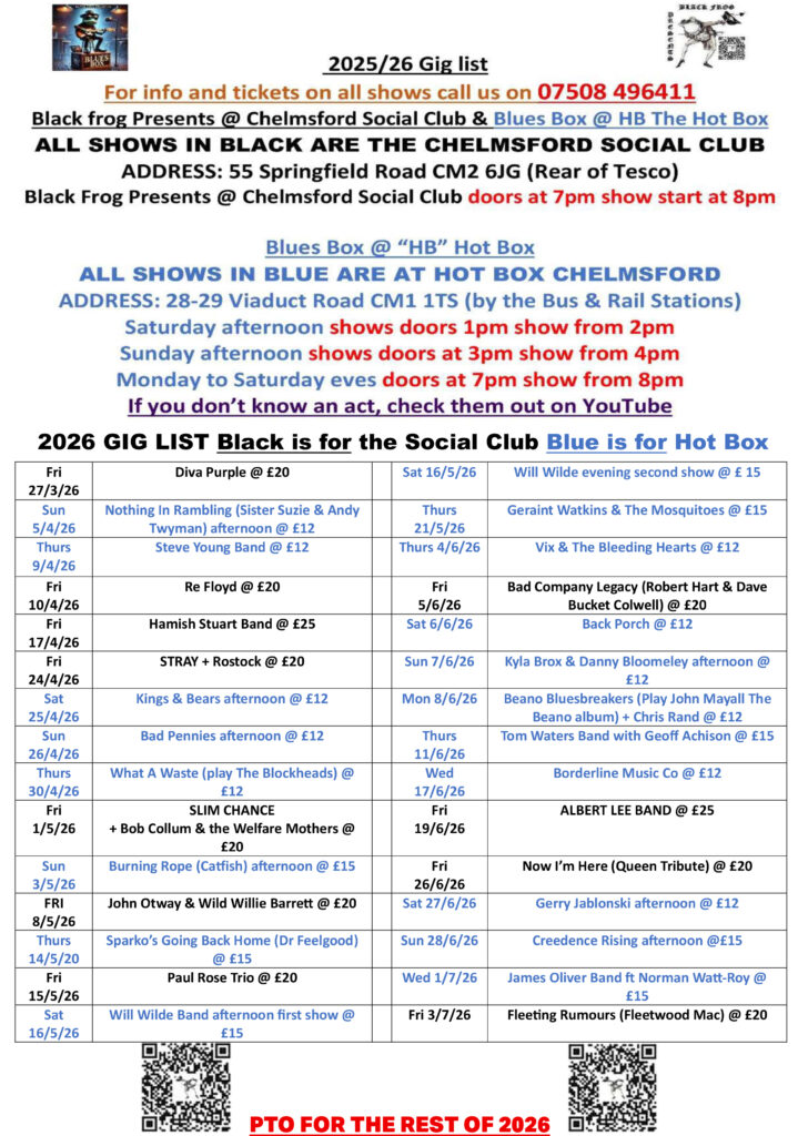Our next show for 2026 at the Chelmsford Social Club is on Friday, 27 March.