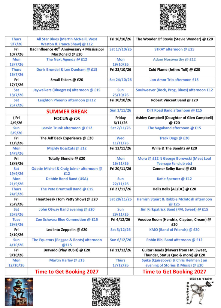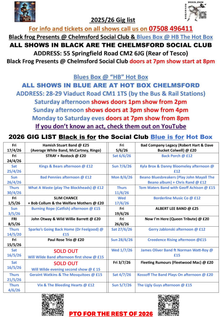 Our next show for 2026 at the Chelmsford Social Club is on Friday, 10 April.