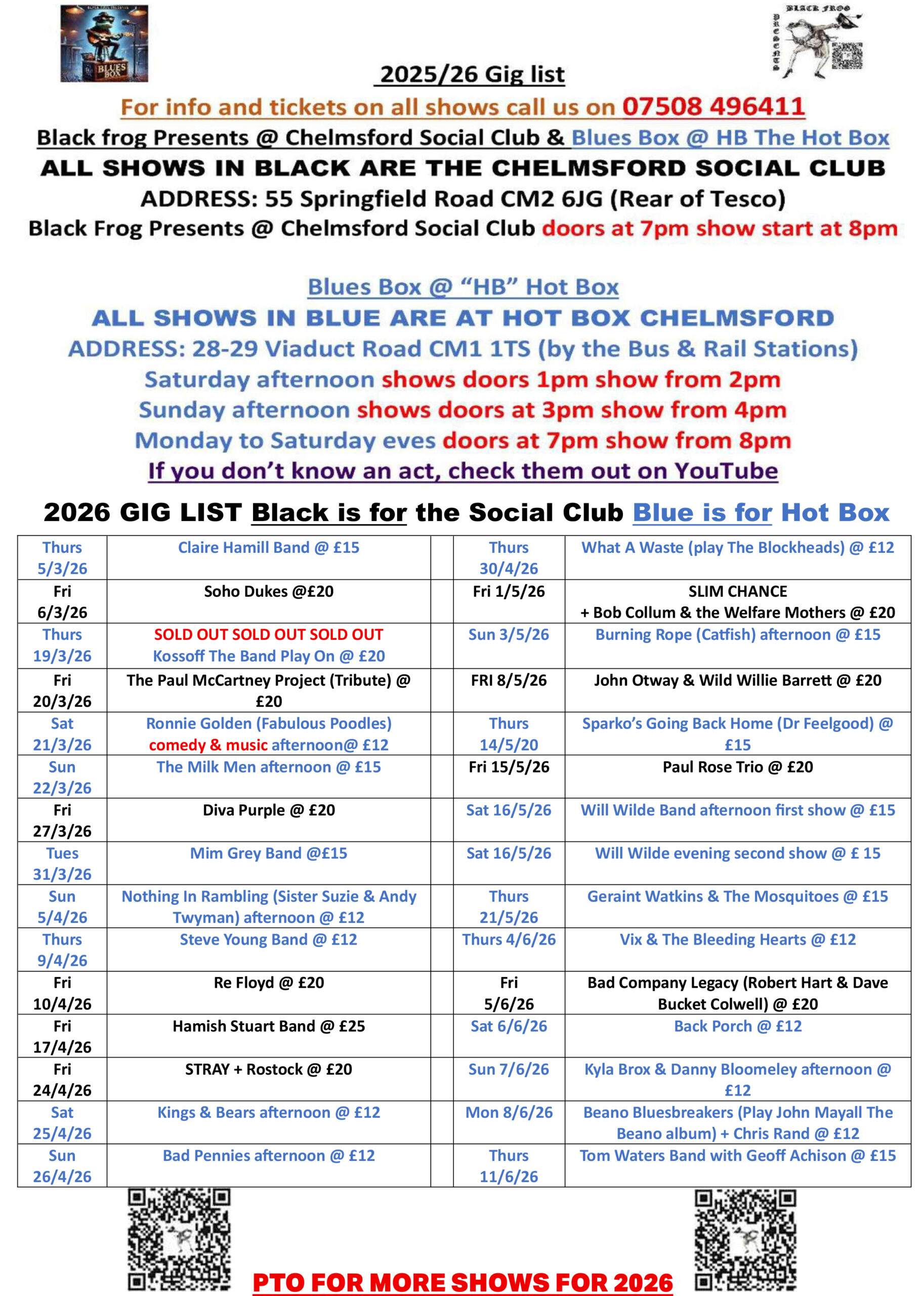 Our next show for 2026 at the Chelmsford Social Club is on Friday, 6 March.