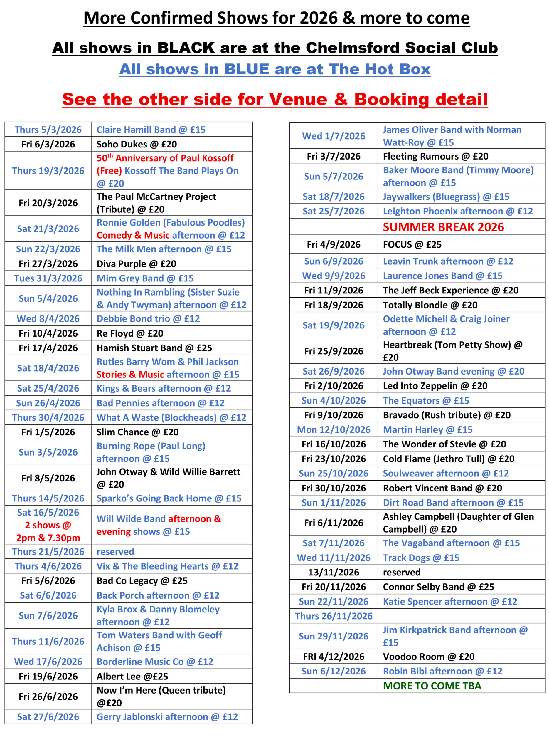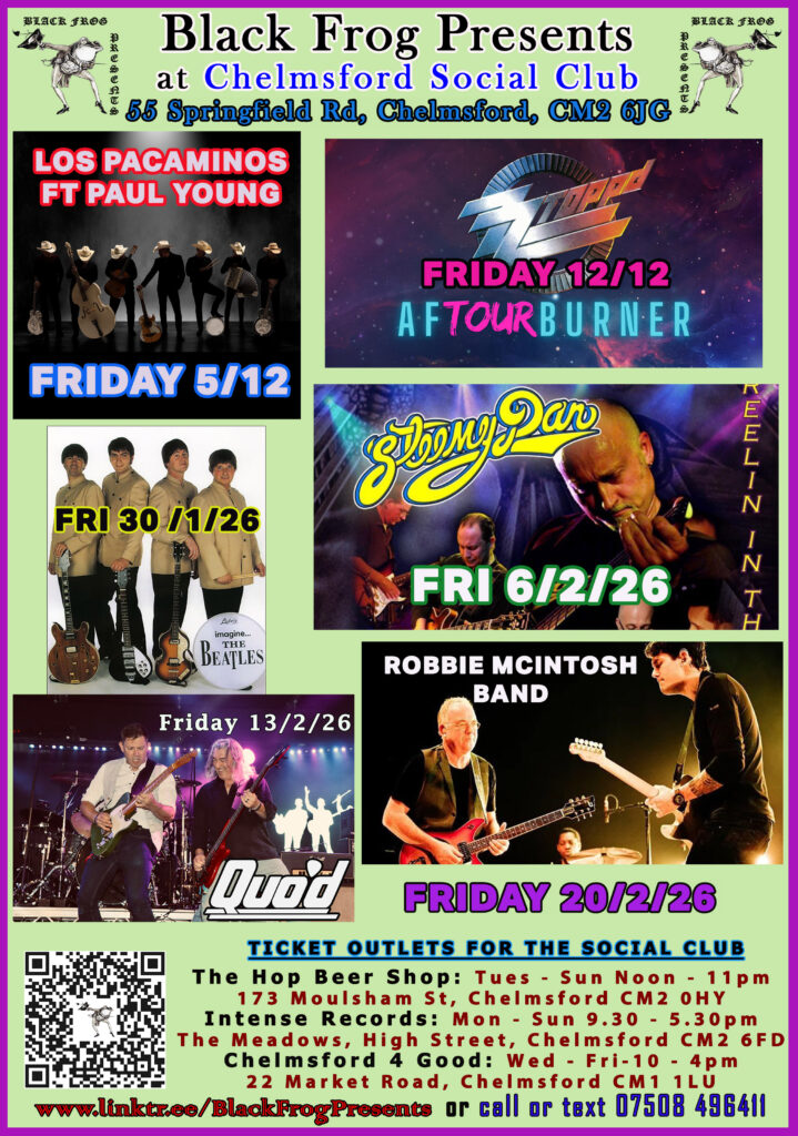 Our next show at the Chelmsford Social Club is on Friday 5 December 2025, Los Pacaminos
