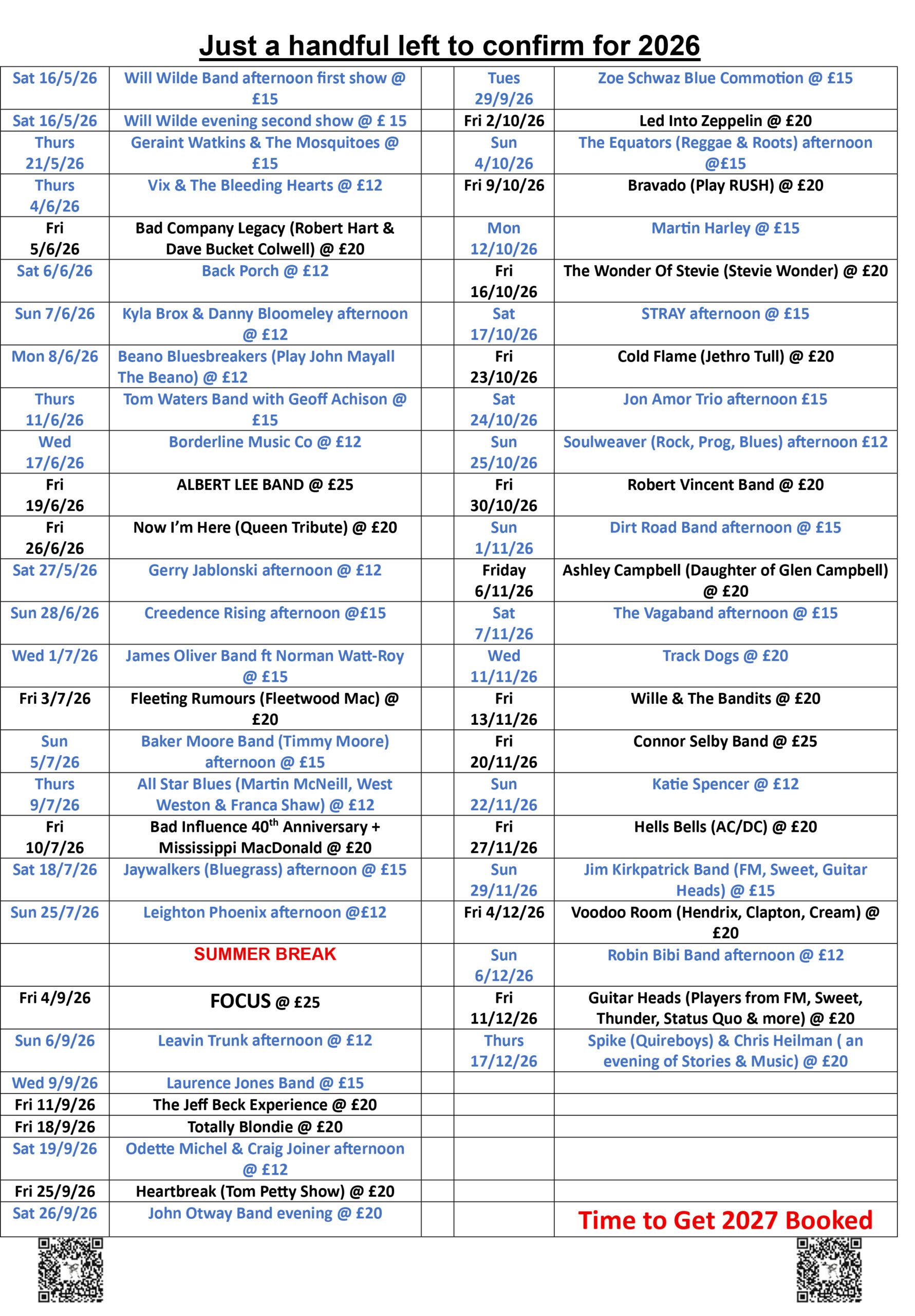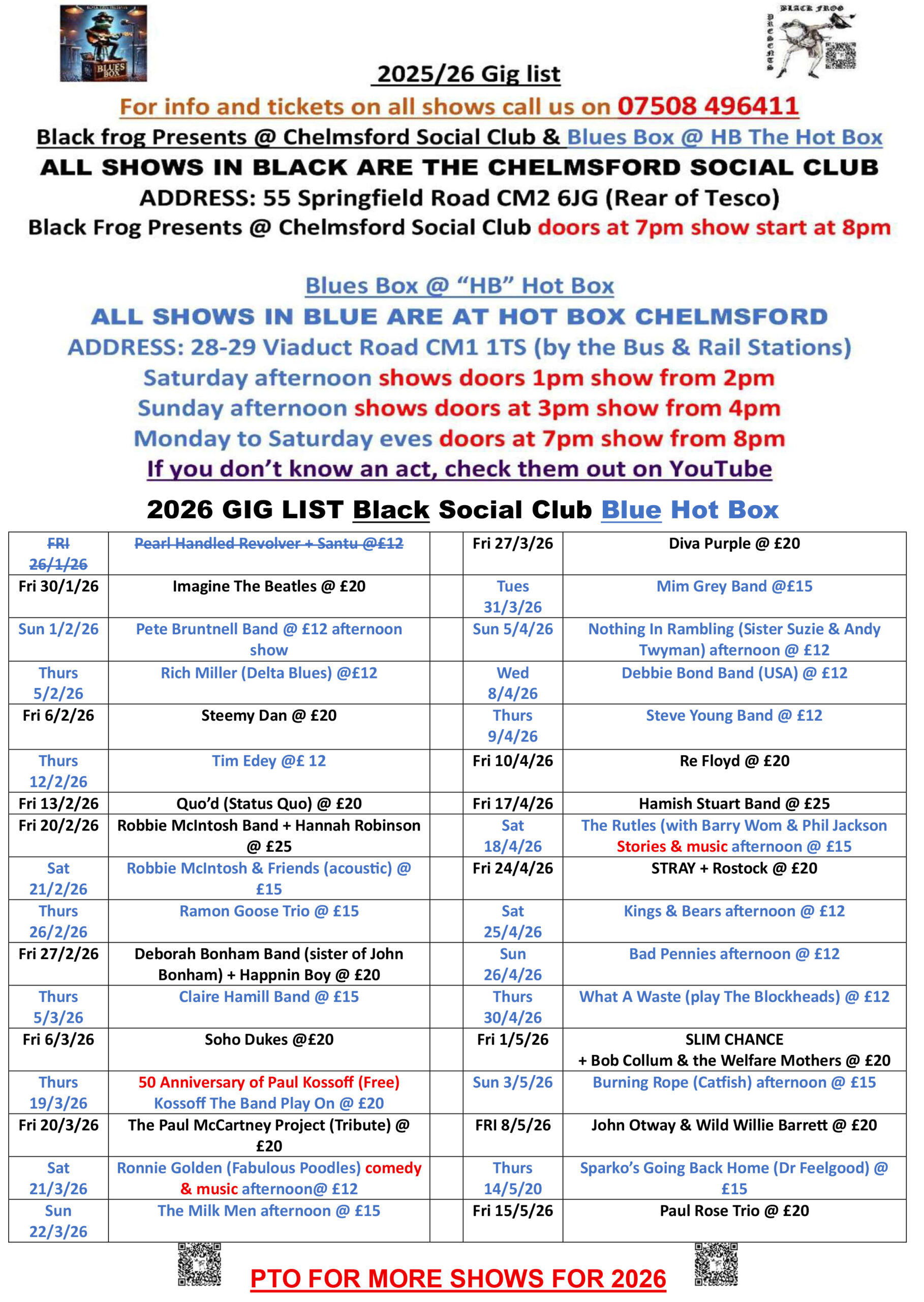 Our first show for 2026 at the Chelmsford Social Club is on Friday, 30 January 2026.